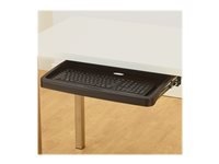 Durable plastic tray locks when fully extended and glides underneath desk when not in use. Mounts at any one of four heights.